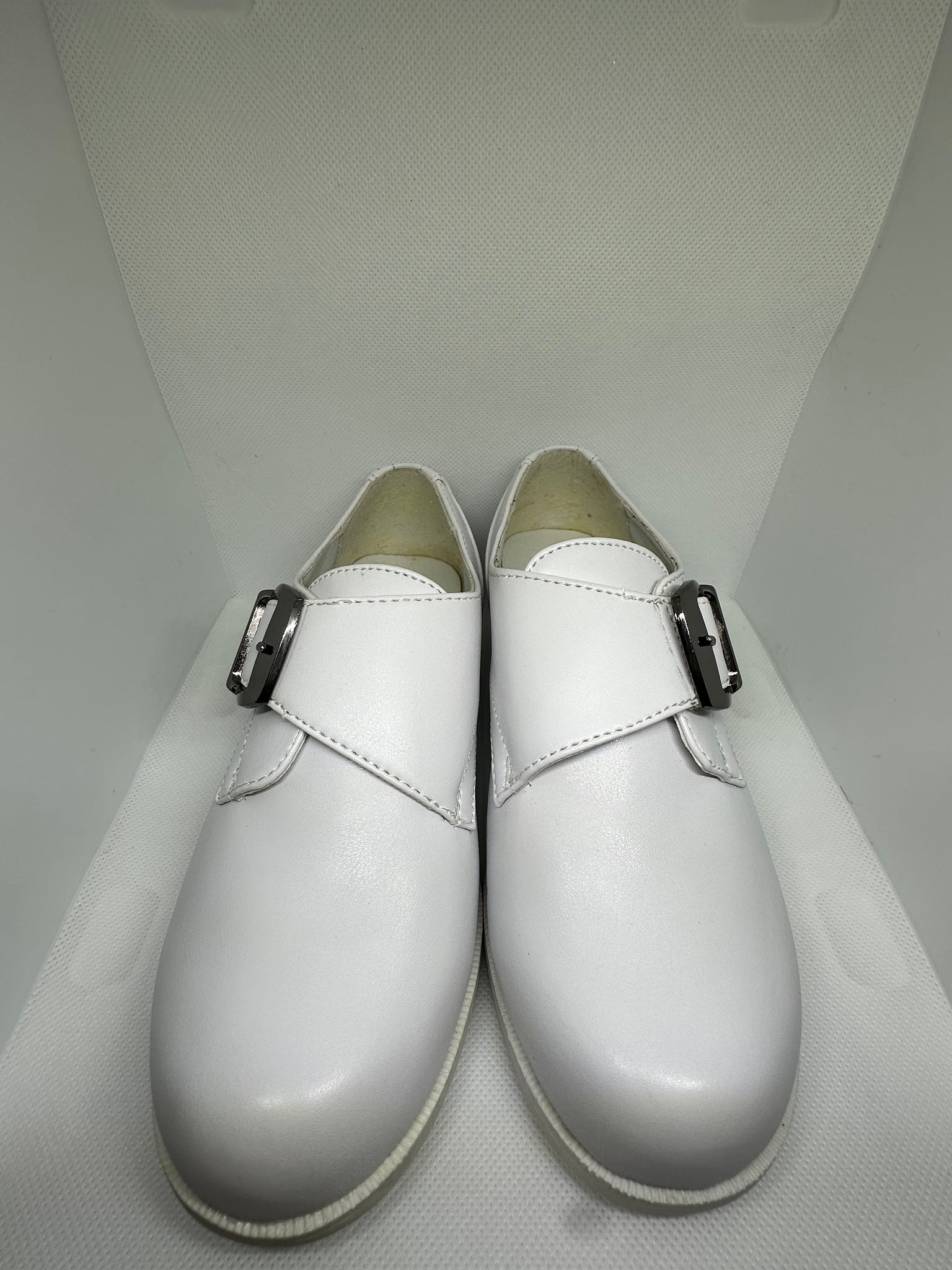 Elevate your young gentleman's wardrobe with the Almond Toe Belt Shoes, a sophisticated fusion of timeless elegance and modern design. Crafted with a smooth tip and adorned with a refined silver buckle, these shoes offer a graceful almond toe silhouette. At the same time, the 1-inch heel offers both poise and comfort, ensuring every step resonates with style and confidence.